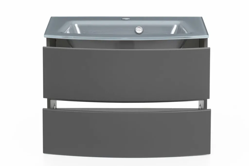 1 meuble sous vasque avec 2 tiroirs en métal à sortie totale avec fermeture amortie, façades arrondies