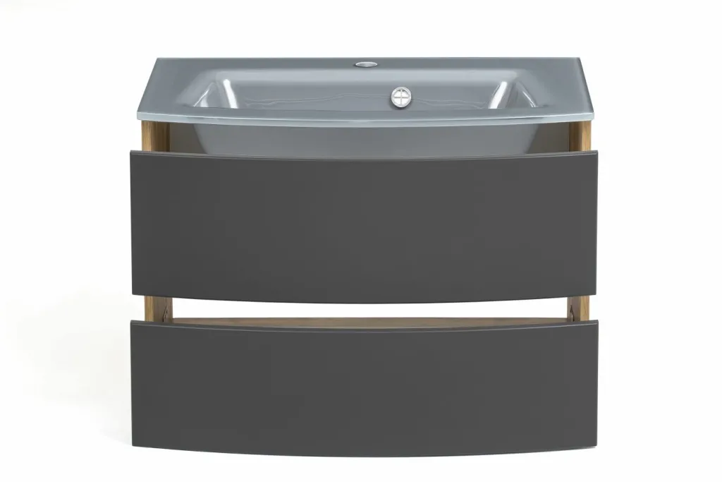 1 meuble sous vasque avec 2 tiroirs en métal à sortie totale avec fermeture amortie, façades arrondies