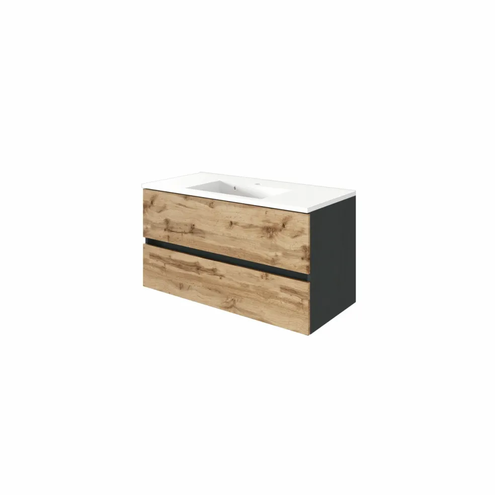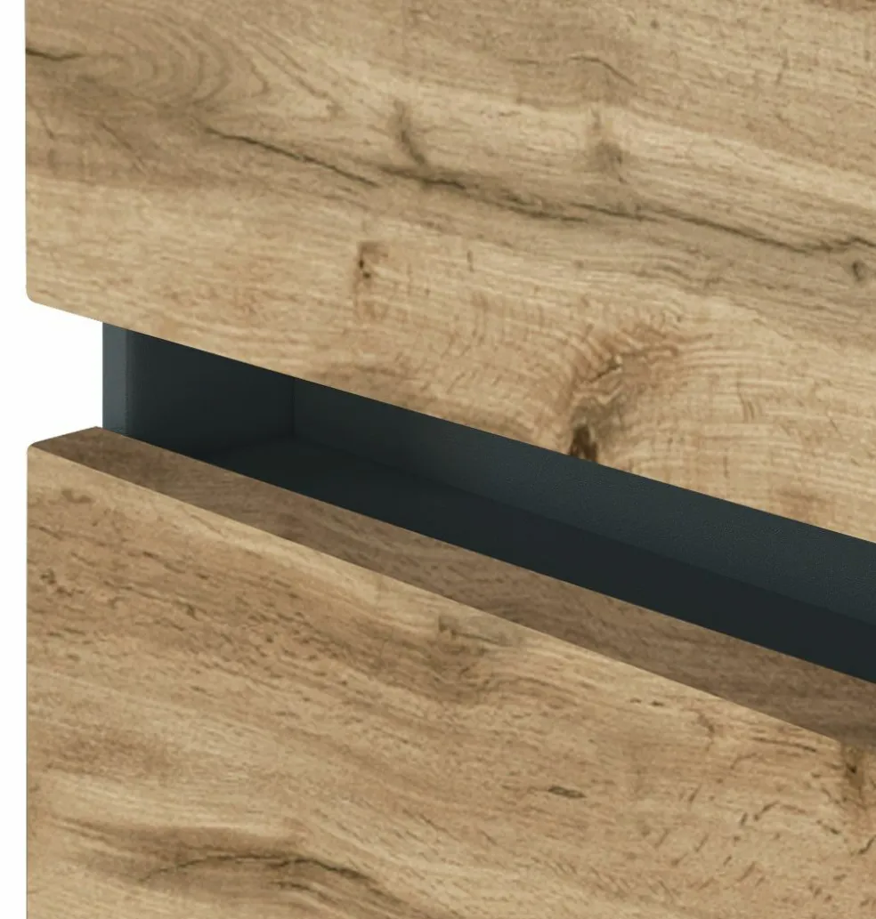 1 meuble sous vasque avec 2 tiroirs en métal avec fermeture amortie, sans poignées
