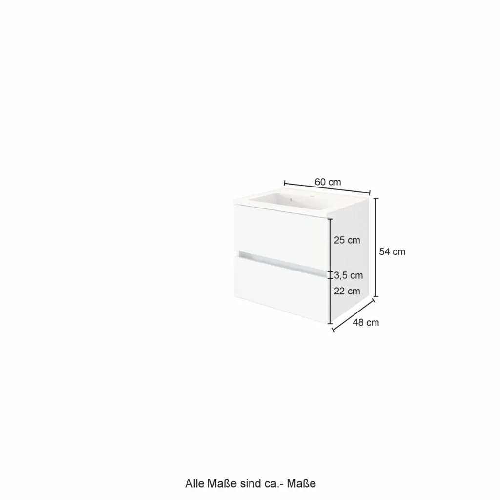 1 meuble sous vasque avec 2 tiroirs en métal avec fermeture amortie, sans poignées