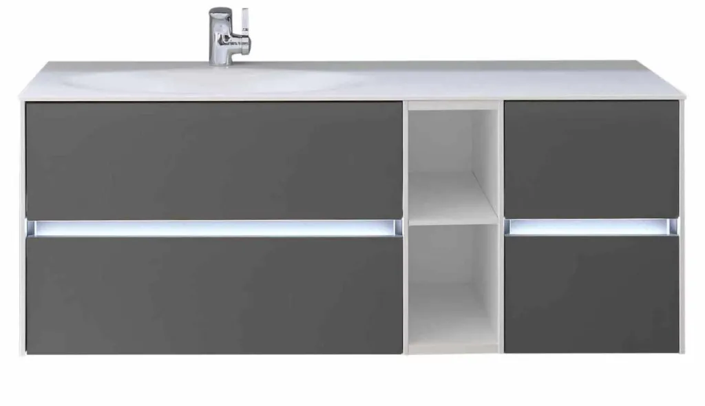 Outre son design unique et clair, ce meuble sous vasque haut de gamme offre un maximum de rangement et de qualité.