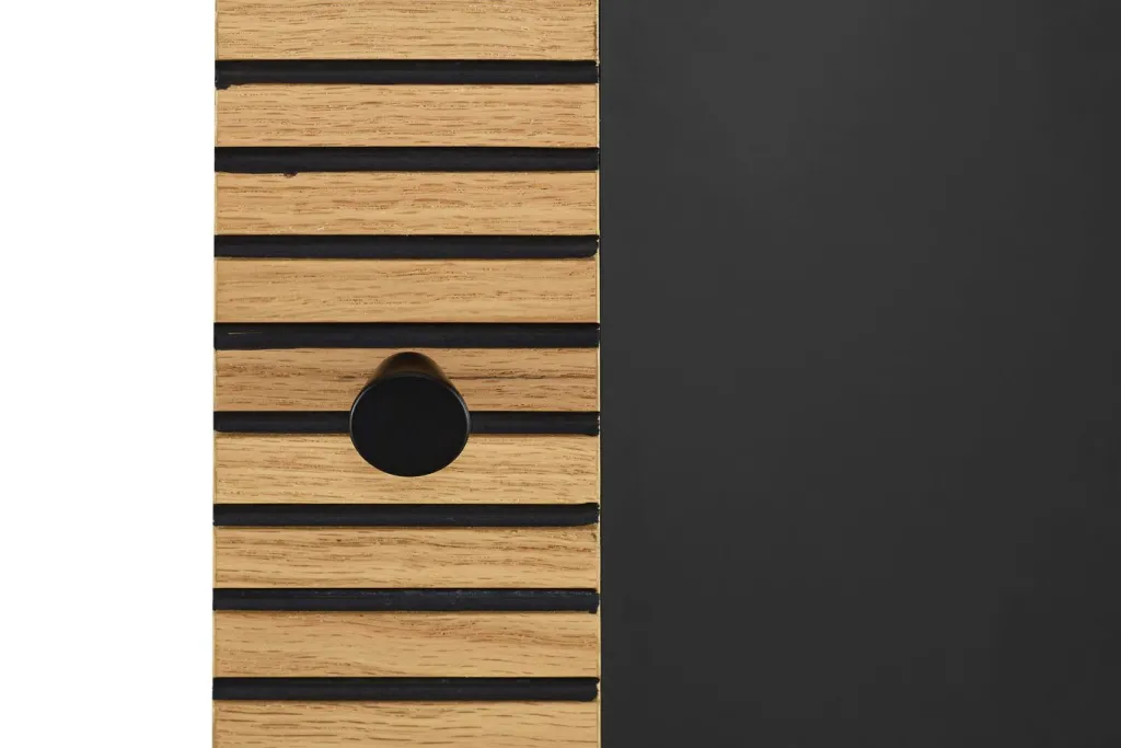 MDF (panneaux de fibres de bois de densité moyenne) décor chêne / placage sauvage véritable (Chine) / verre / ton noir
