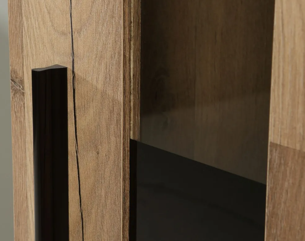 1 élément de rangement avec 1 porte en verre/bois et 2 tablettes en verre