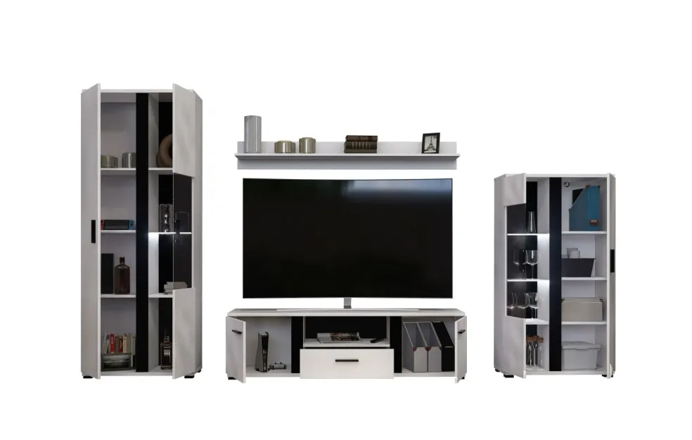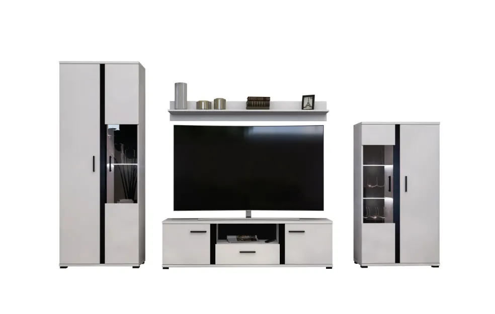 | Equipement murs TV: | Passe-câbles, Tiroirs, incl. éclairage | ||