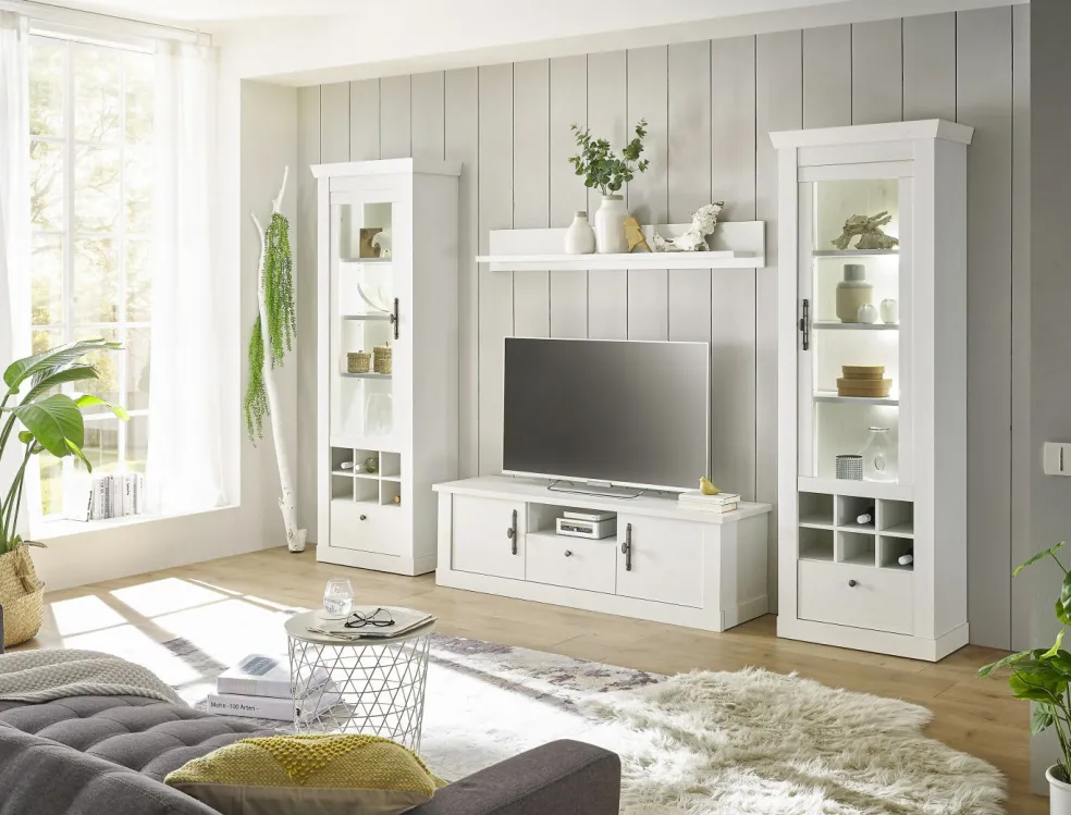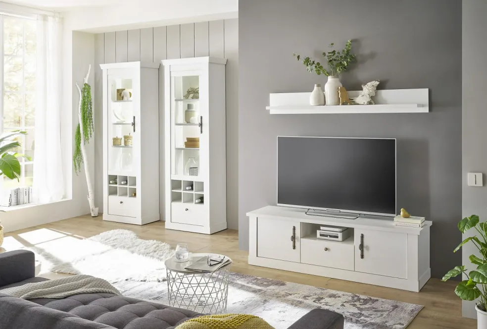 1 banc TV avec 2 portes, 1 tiroir, 1 casier pour l’équipement et 1 passe-câble