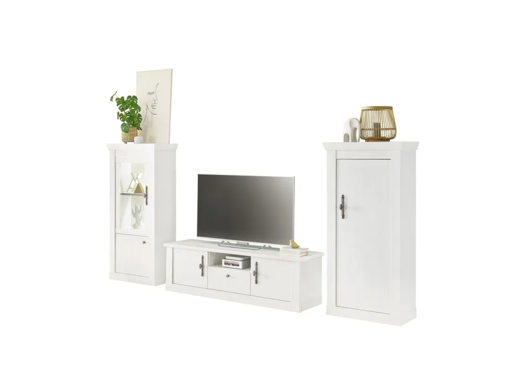 1 banc TV avec 2 portes, 1 tiroir, 1 casier pour l’équipement et 1 passe-câble