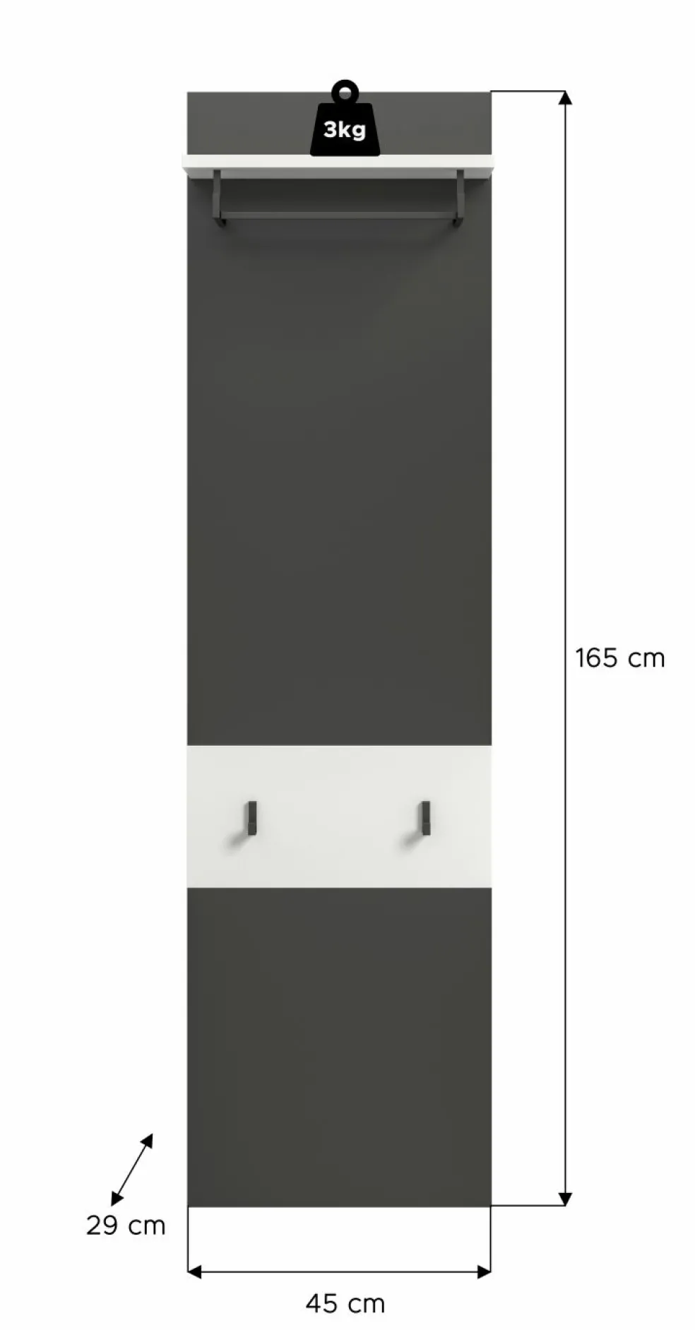 | Panneau portemanteau | 45 | 165 | 29 |