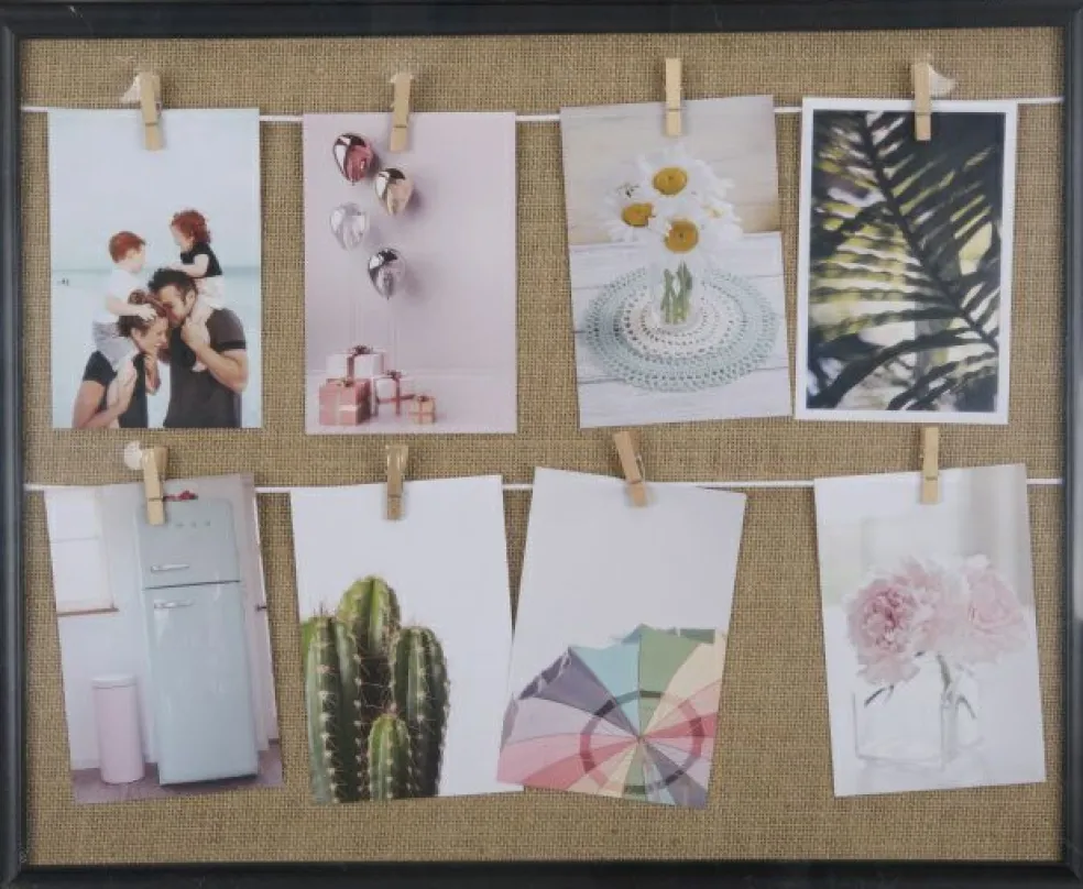1 pêle-mêle avec toile en sisal et 8 petites pinces