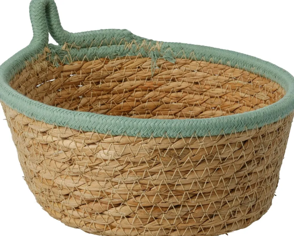 Coloris : marron naturel avec bord en tissu ton blanc, jaune, vert, rose ou mauve dans 5 modèles* différents