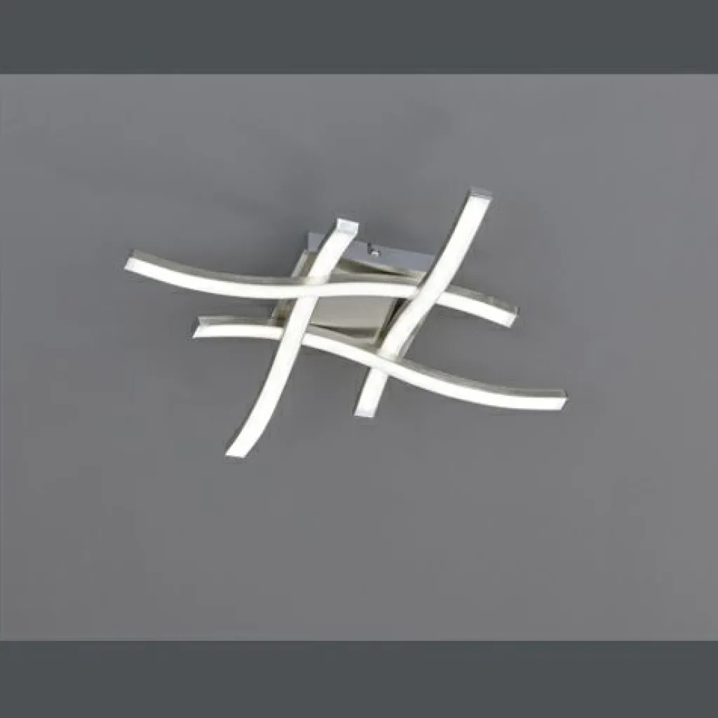 Le plafonnier ROUTE séduit par son design ondulé moderne et élégant. Bien positionnée, la lampe attirera tous les regards et mettra en valeur votre pièce avec beaucoup de style. Le plafonnier LED 4 branches ROUTE produit une lumière douce dans un ton blanc chaud et est idéale pour éclairer salon et chambre de taille moyenne. La combinaison du nickel mat et du blanc s’intègre parfaitement dans les intérieurs modernes. La lampe dispose, en outre, de la technologie LED qui se caractérise par une luminosité de qualité et une excellente efficacité énergétique. Ceci permet d’économiser 80 % des coûts énergétiques par rapport aux ampoules halogènes habituelles. De plus, les sources lumineuses LED ont une durée de vie accrue, produisent moins de chaleur et participent à la protection de l’environnement.