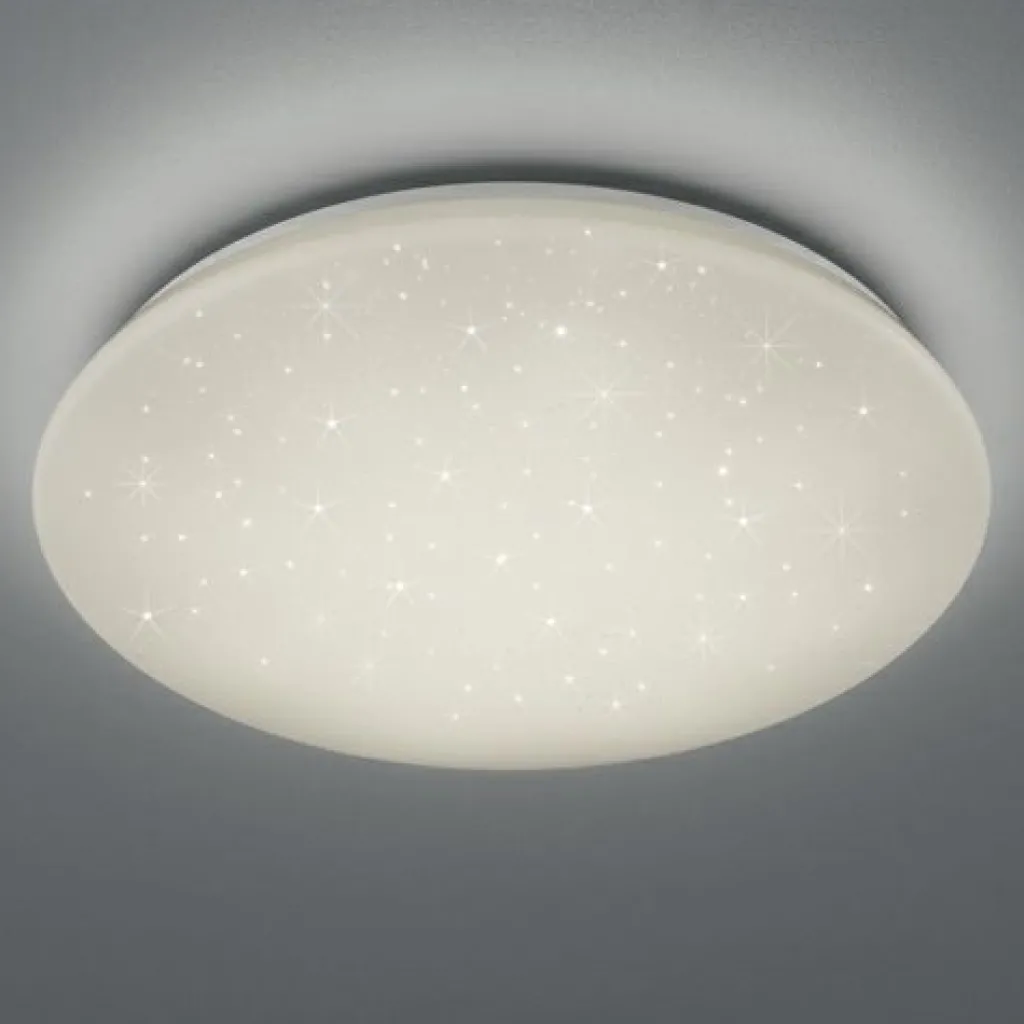 Le plafonnier POTZ séduit par son design sobre qui s’intègre parfaitement dans différents styles de pièces. Le luminaire d’un diamètre de 50 cm dispose d’une surface effet ciel étoilé et garantit une ambiance lumineuse individuelle et un éclairage agréable de votre intérieur. De plus, la lampe séduit par ses fonctions supplémentaires pratiques. Grâce au variateur SWITCH intégré, il est possible de régler la luminosité sur 3 niveaux (100%, 50%, 25%) avec un interrupteur mural habituel pour créer différentes ambiances lumineuses. De plus, le modèle POTZ bénéficie de la classification IP44 et est donc protégé contre les éclaboussures d’eau. C’est pourquoi le plafonnier POTZ est l’éclairage idéal pour la salle de bains, mais aussi pour le salon ou les chambres. La vasque en acrylique blanc s’harmonise également à merveille avec les autres couleurs de la pièce. La lampe dispose, en outre, de la technologie LED qui se caractérise par une luminosité de qualité et une excellente efficacité énergétique. Ceci permet d’économiser 80 % des coûts énergétiques par rapport aux ampoules halogènes habituelles. De plus, les sources lumineuses LED ont une durée de vie accrue, produisent moins de chaleur et participent à la protection de l’environnement.