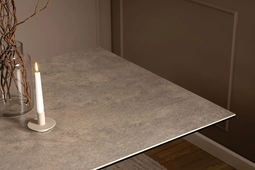 Plateau de table : verre céramique Anista ton gris aspect rugueux