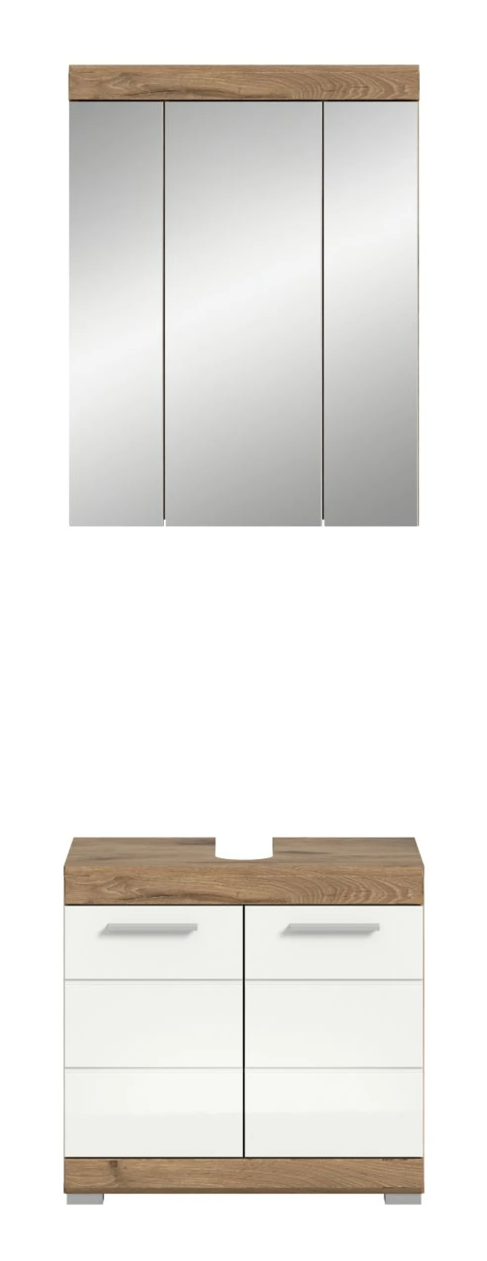 1 armoire de toilette avec 3 portes et 6 tablettes amovibles