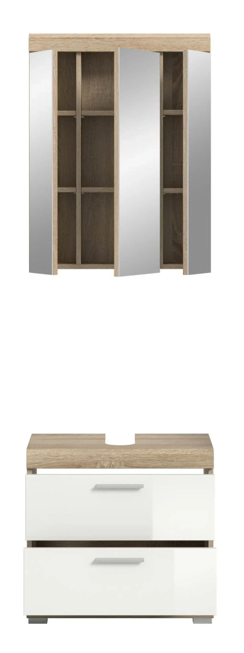 1 armoire de toilette avec 3 portes et 6 tablettes amovibles