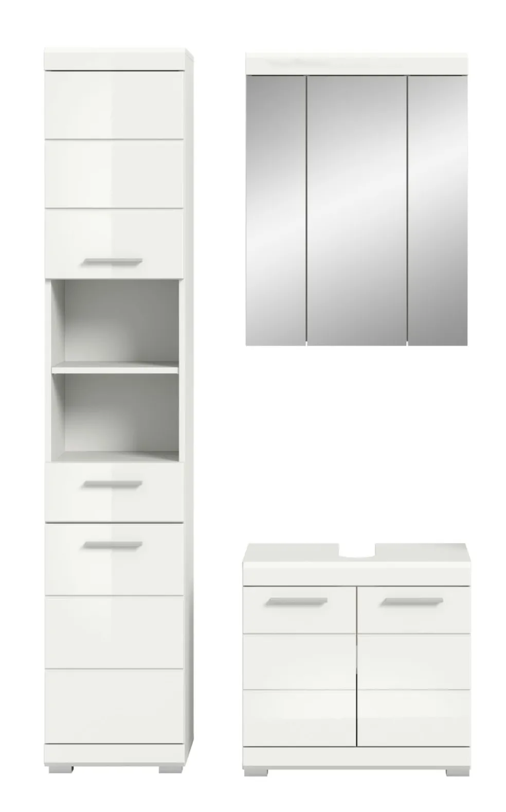 1 armoire de toilette avec 3 portes et 6 tablettes amovibles