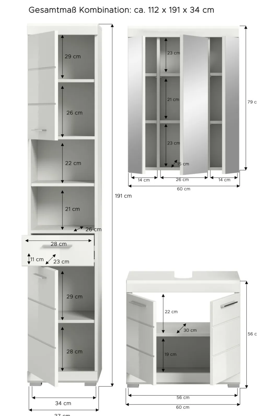 | Meuble sous lavabo | 60 | 56 | 34 |