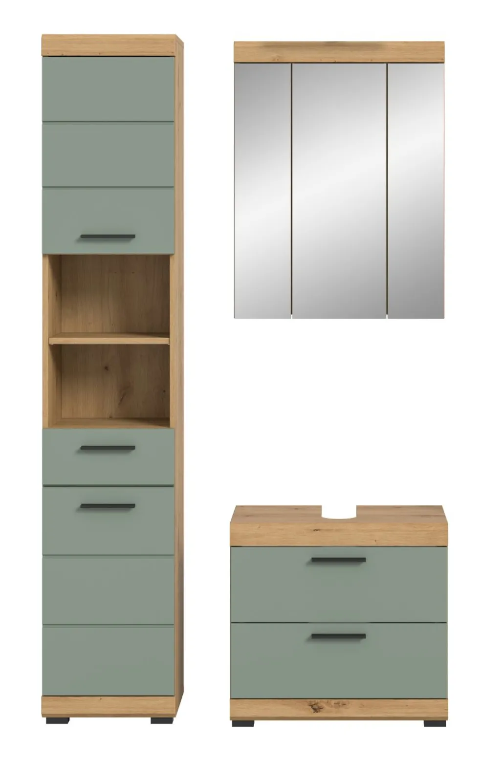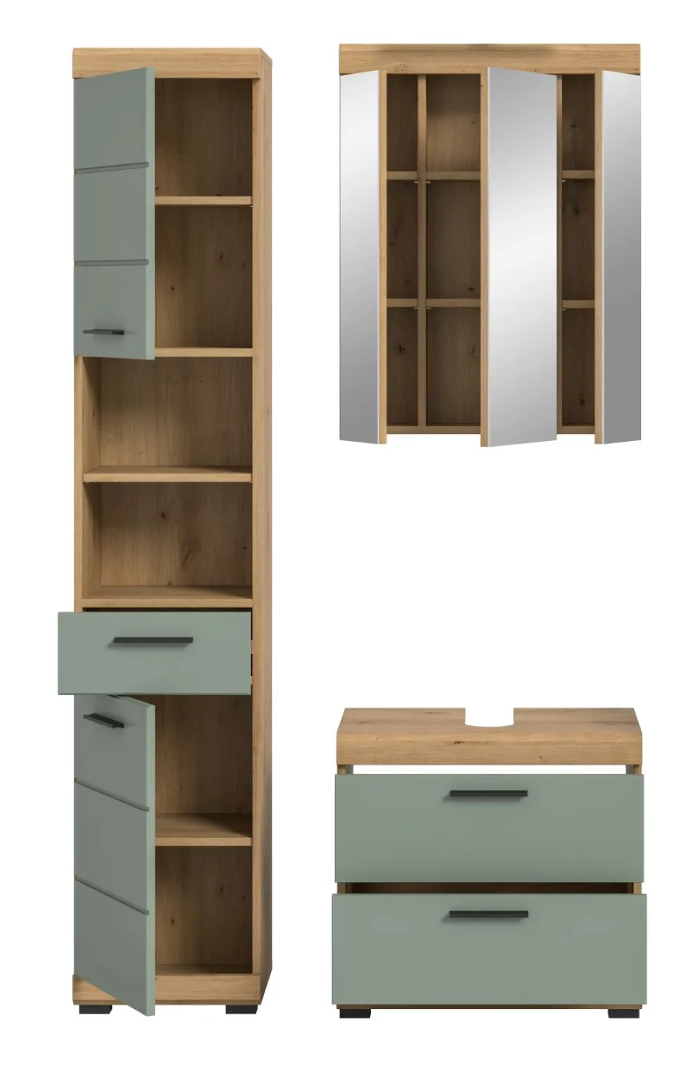 1 armoire de toilette avec 3 portes et 6 tablettes amovibles