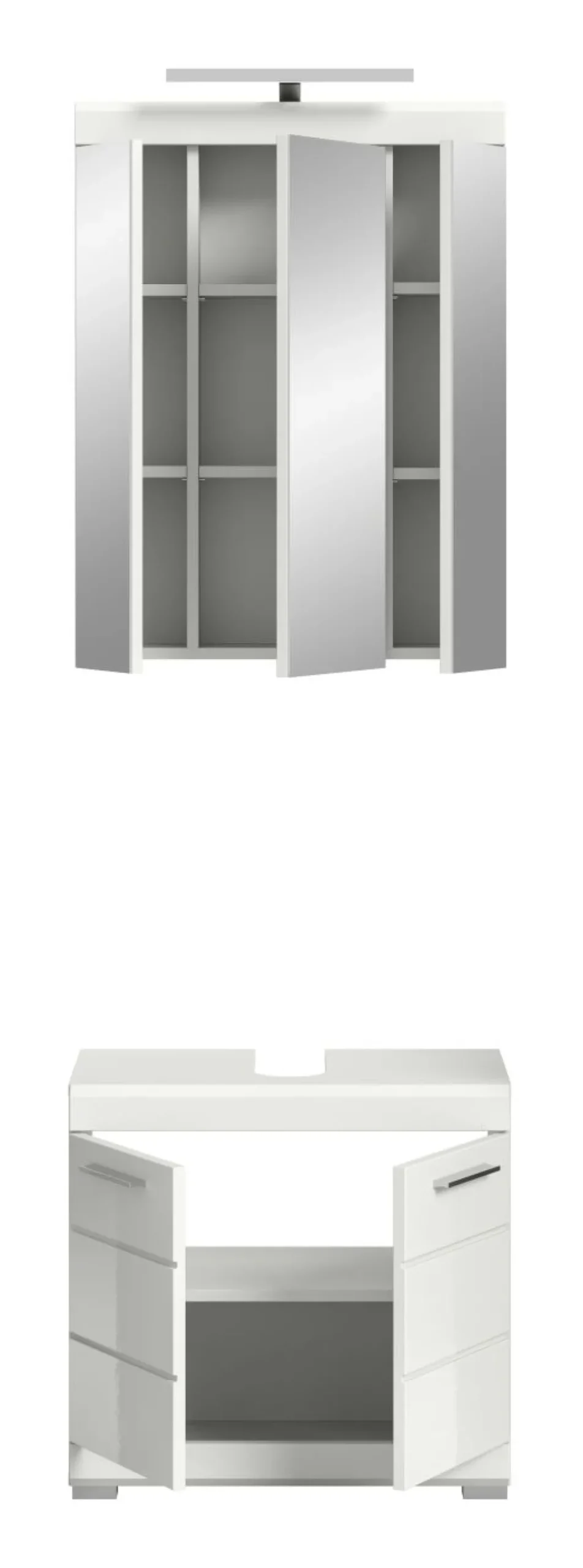 1 armoire de toilette avec 3 portes et 6 tablettes amovibles