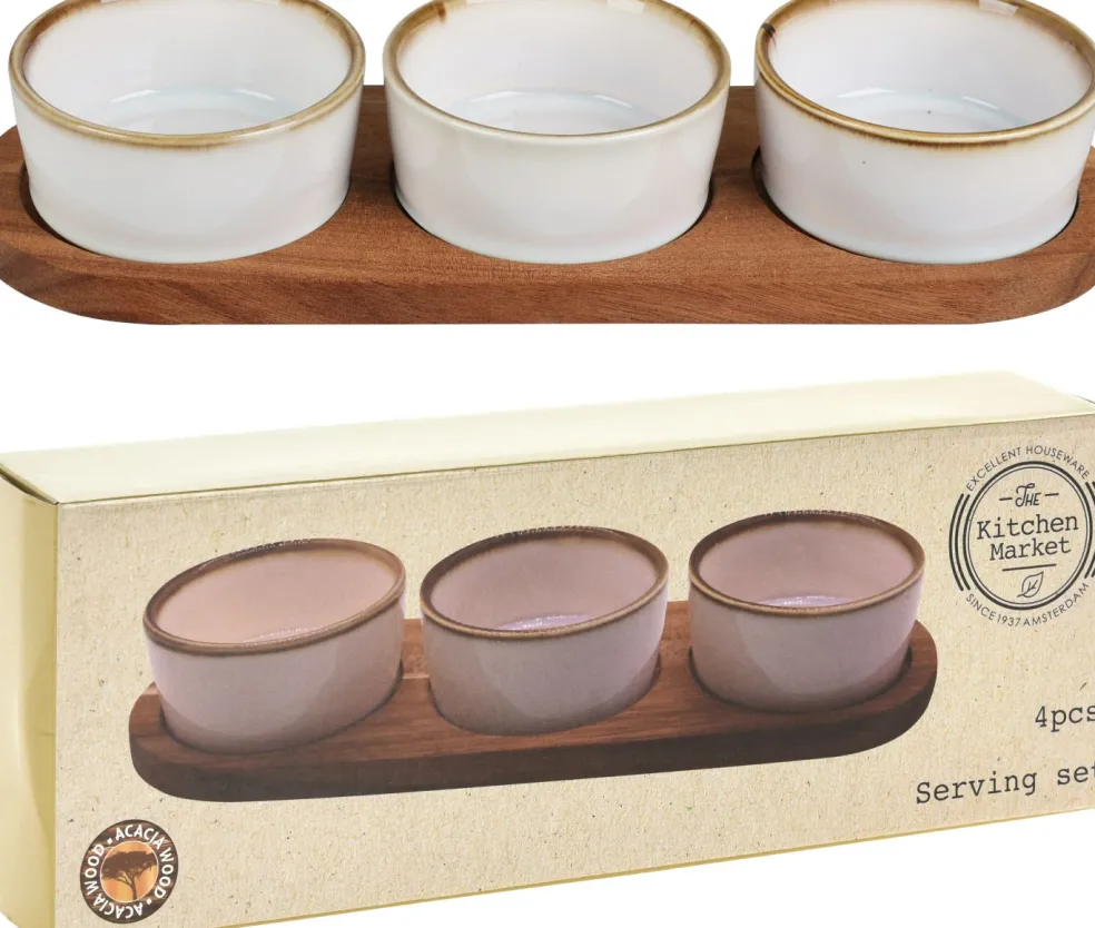 1 service apéro comprenant 3 coupelles et un plateau