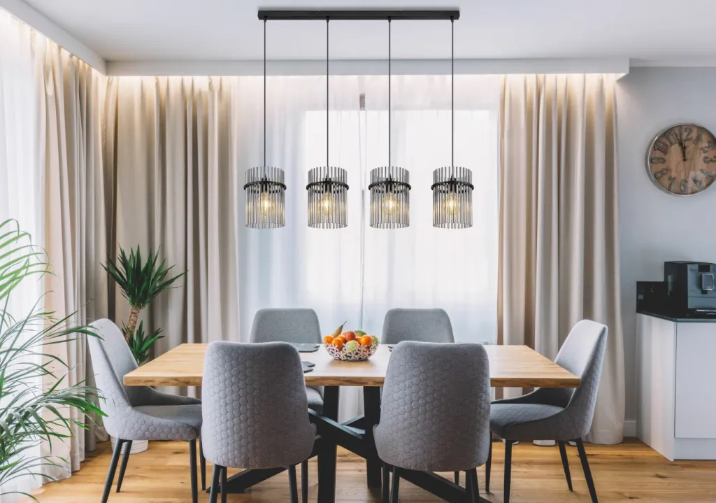 La suspension GORLEY est une solution élégante et tendance pour l’éclairage de votre intérieur. Grâce à son rail droit et à ses quatre lampes, elle garantit un éclairage agréable et stylé dans votre pièce de vie. Les abat-jours sont constitués de tiges de verre joliment assemblés. Ce design crée un jeu de lumière fascinant qui plongera votre pièce dans une ambiance cosy.