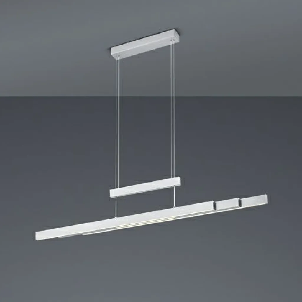 Un design simple et de nombreuses fonctions ! La suspension TRAJAN séduit par des fonctions pratiques et un design très classe. La lampe est extensible et réglable en hauteur pour garantir une adaptation optimale aux différentes situations. De plus, la température de couleur et l’intensité lumineuse peuvent être réglées individuellement. Que ce soit pour travailler, pour les soirées jeux entre amis ou pour manger : les différents réglages offrent les conditions idéales pour une lumière d’ambiance adaptée. L’éclairage vers le haut et le bas garantit également des effets lumineux agréables et harmonieux. Le design en nickel mat crée une image d’ensemble tendance et permet une intégration facile dans les intérieurs existants. La lampe dispose, en outre, de la technologie LED qui se caractérise par une luminosité de qualité et une excellente efficacité énergétique. Ceci permet d’économiser 80 % des coûts énergétiques par rapport aux ampoules halogènes habituelles. De plus, les sources lumineuses LED ont une durée de vie accrue, produisent moins de chaleur et participent à la protection de l’environnement.