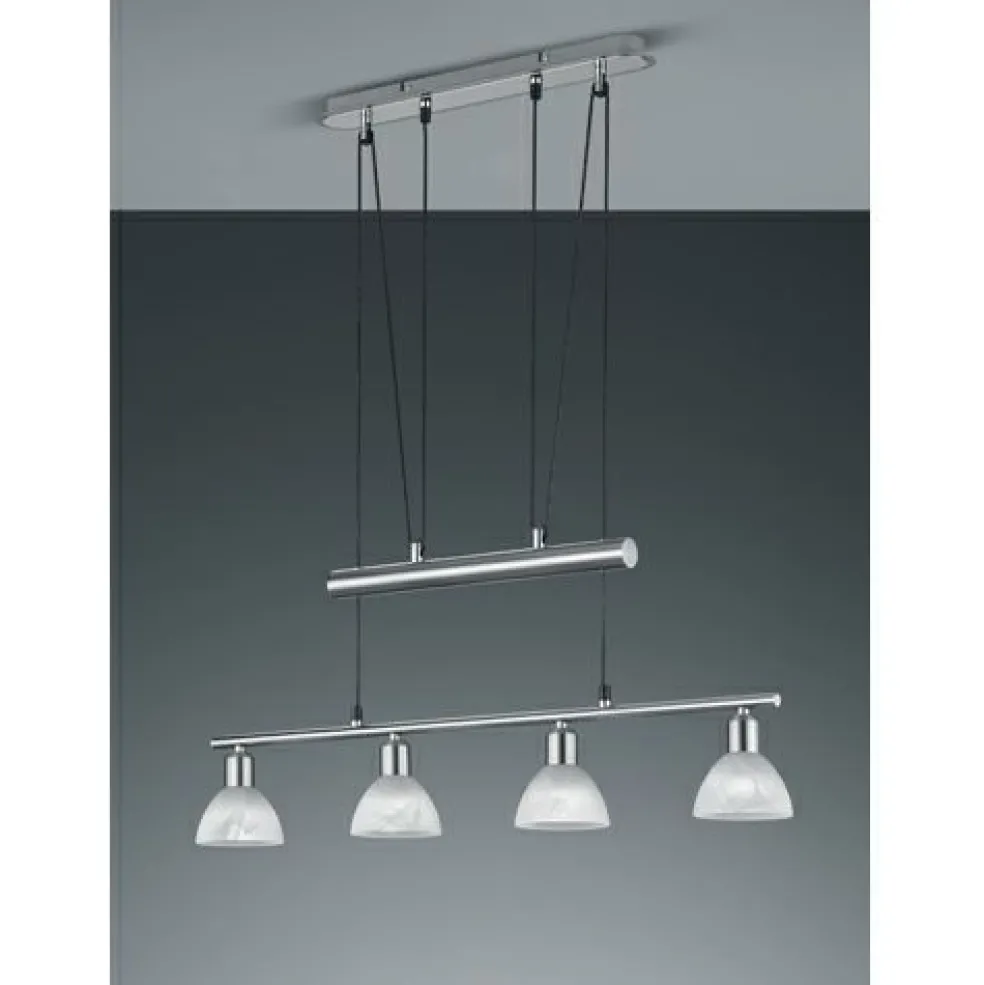 La suspension LEVISTO crée une ambiance cosy tout en offrant un maximum de fonctionnalité. La suspension réglable permet de faire varier la hauteur de 95 cm à 160 cm. Grâce à cette fonction, vous avez la possibilité d’adapter la lampe selon vos souhaits pour un éclairage optimal. Le luminaire est idéal pour éclairer le coin repas. La lampe a une largeur de 80 cm et une profondeur de 11 cm. Le coloris nickel mat combiné au verre ton albâtre confère à cette lampe une touche élégante qui permet de l’intégrer facilement dans un intérieur moderne, mais aussi classique. La lampe dispose, en outre, de la technologie LED qui se caractérise par une luminosité de qualité et une excellente efficacité énergétique. Ceci permet d’économiser 80 % des coûts énergétiques par rapport aux ampoules halogènes habituelles. De plus, les sources lumineuses LED ont une durée de vie accrue, produisent moins de chaleur et participent à la protection de l’environnement.