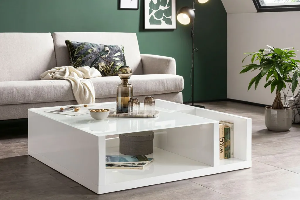 Caisson et façade : MDF (panneau de fibres de bois de densité moyenne) laqué ton blanc ultra brillant