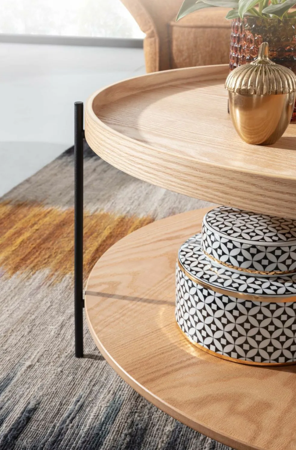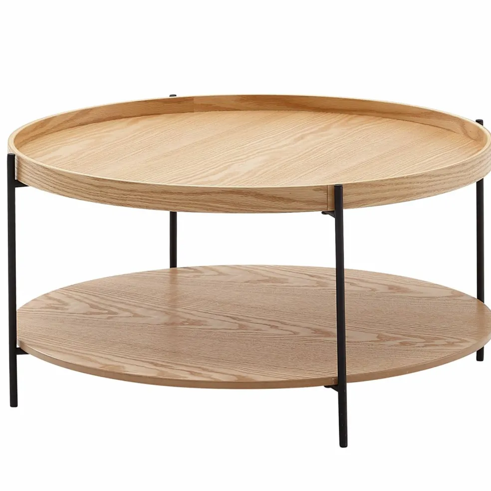 Anneau au niveau du plateau : bois de tulipier (Inde) avec placage chêne