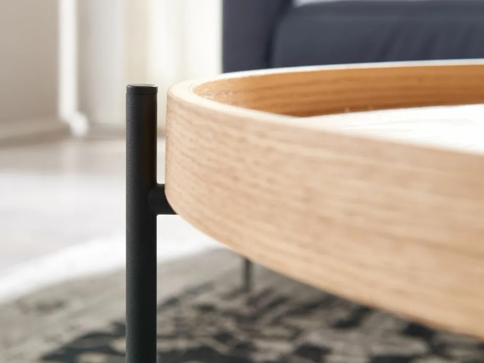 Anneau au niveau du plateau : bois de tulipier (Inde) avec placage chêne