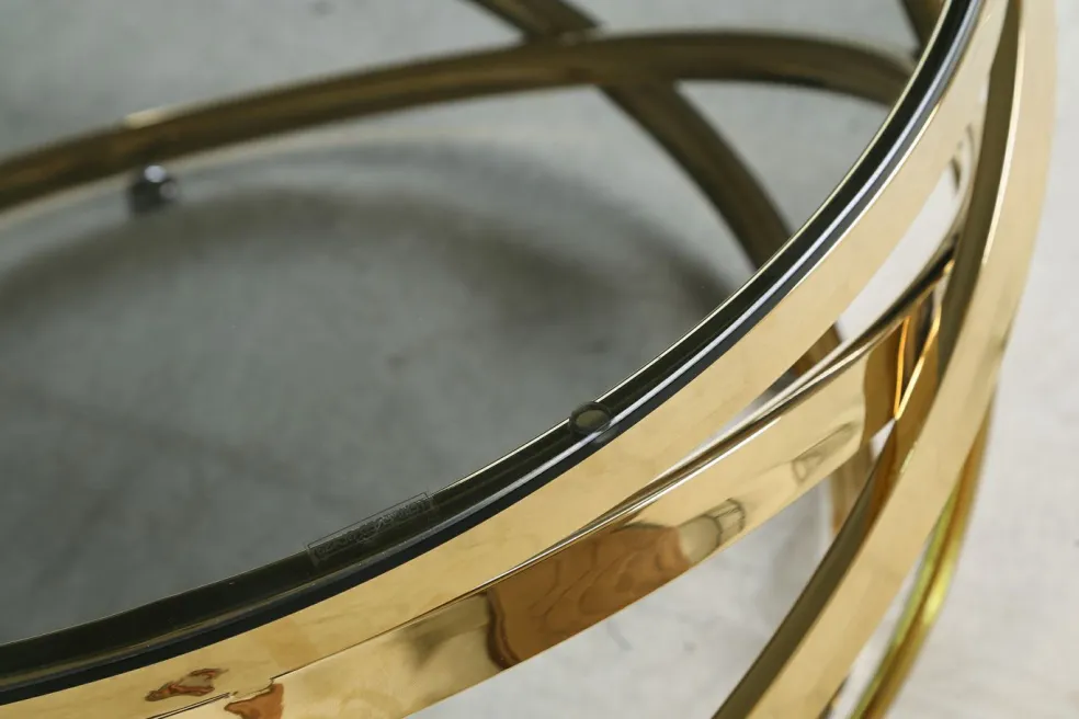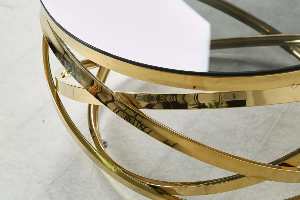 Piètement : métal ton doré, acier inoxydable