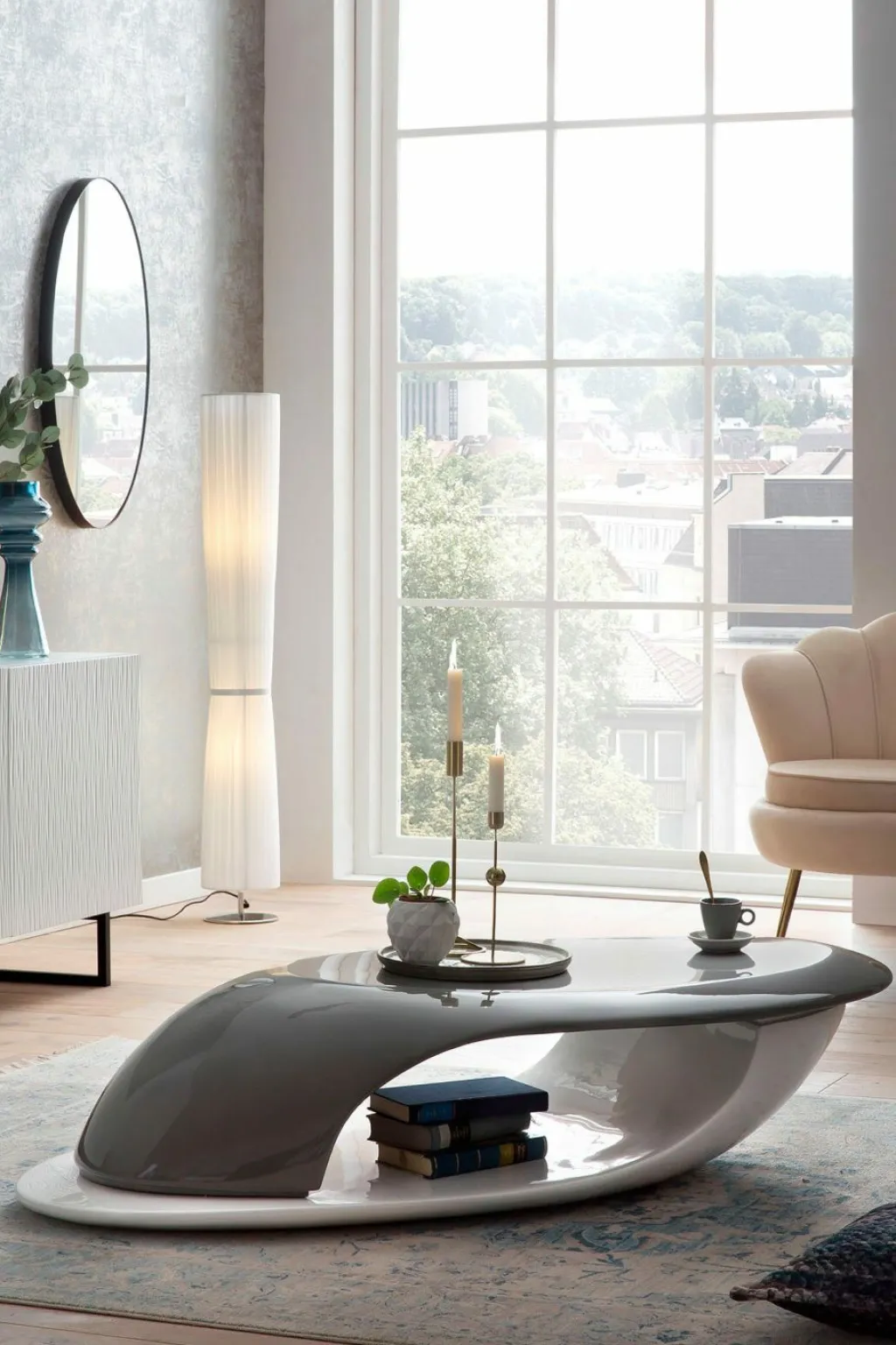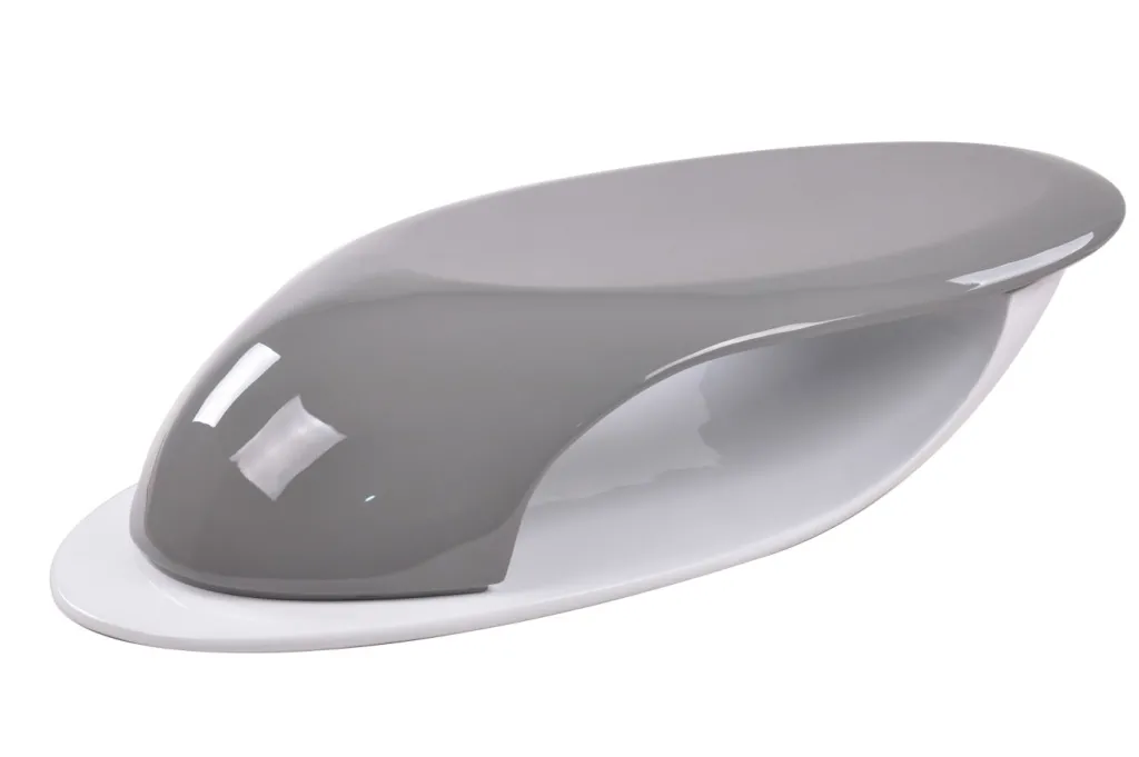 Fibre de verre laquée ton gris ultra brillant (en haut) et fibre de verre laquée ton blanc ultra brillant (en bas)