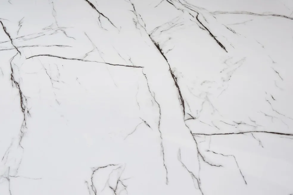 Plateau de table : verre de sécurité aspect marbre blanc