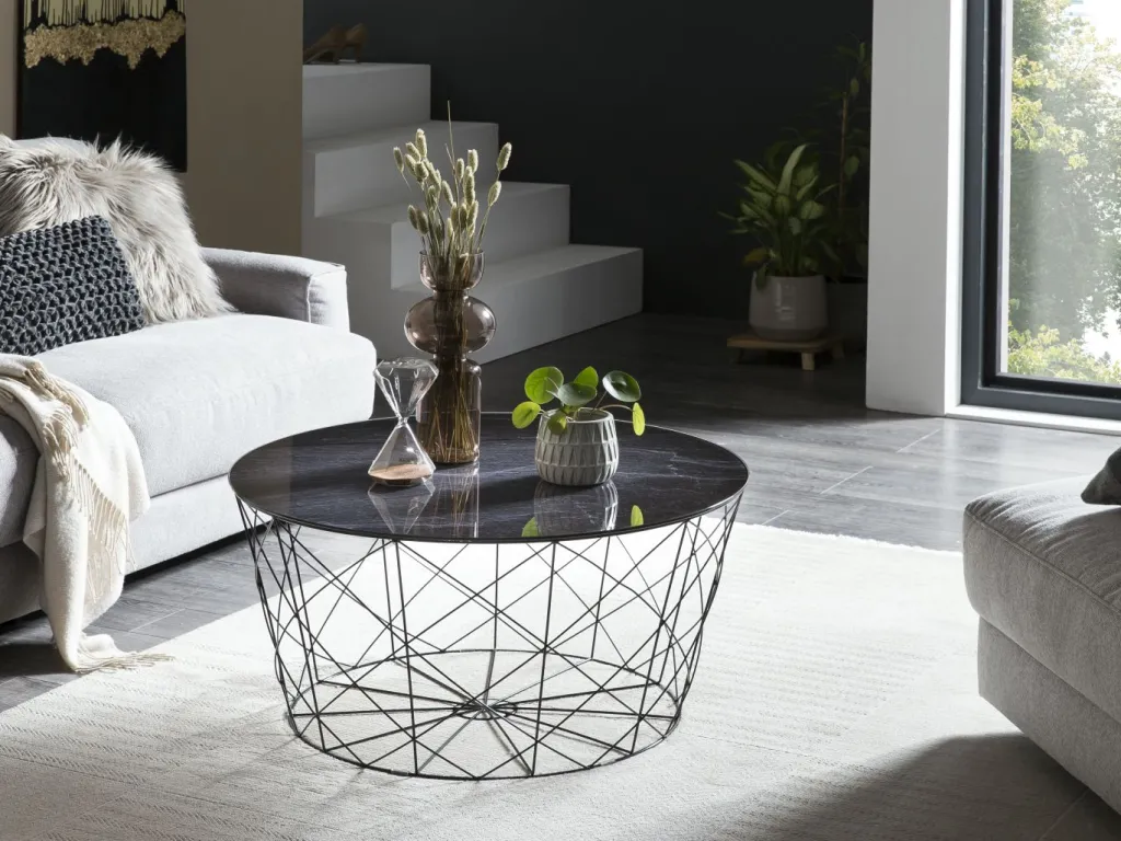 Plateau de table : plateau en verre avec film aspect marbre ton noir