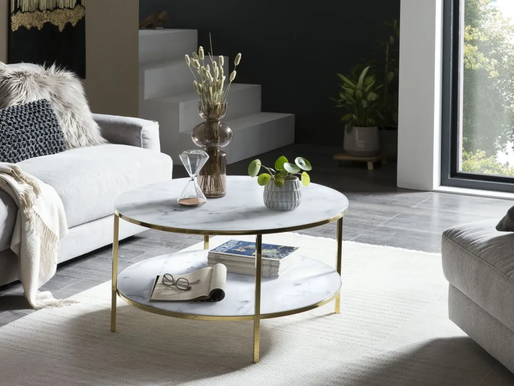 Plateau de table : plateau en verre avec film aspect marbre ton blanc