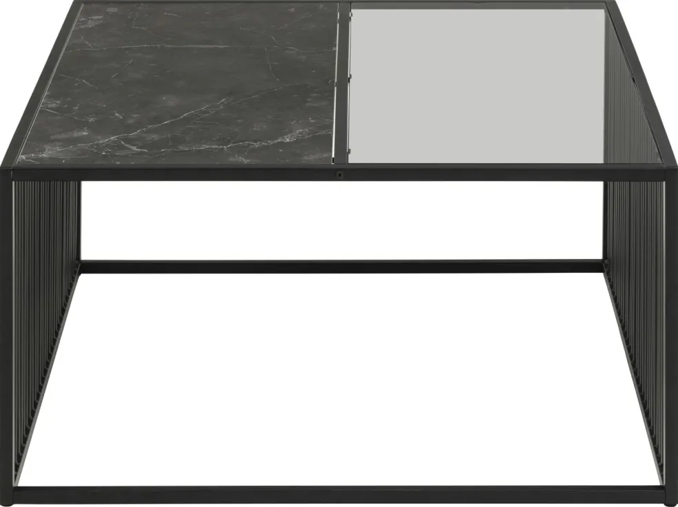 Plateau de table : décor marbre ton noir mat et verre fumé