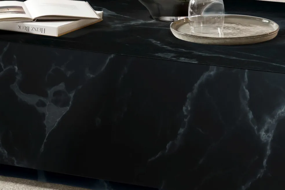 MDF (panneaux de fibres de bois de moyenne densité) revêtu d’un film en mélamine aspect marbre noir