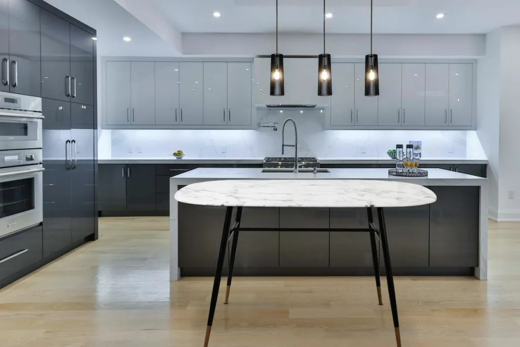 Plateau de table : verre aspect marbre blanc (papier imprimé aspect marbre et plusieurs couches de résine)