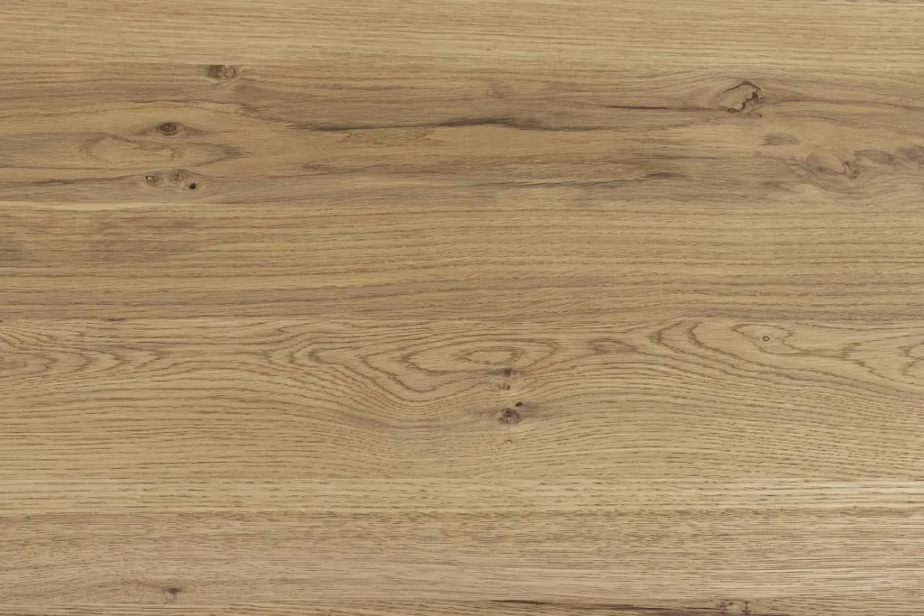 Plateau de table : placage chêne sauvage (Chine) huilé aspect naturel sur socle en MDF (panneau de fibres de bois de densité moyenne)