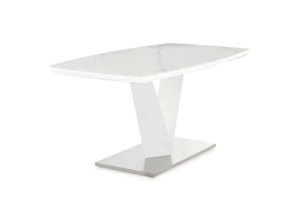 Plateau de table : céramique ton blanc ultra brillant / avec éléments aspect marbre