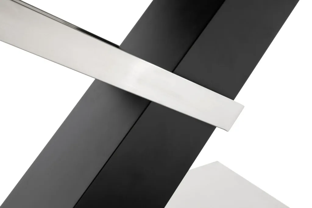 Colonne : MDF (panneau de fibres de bois de densité moyenne) laqué ton noir mat et inox brossé