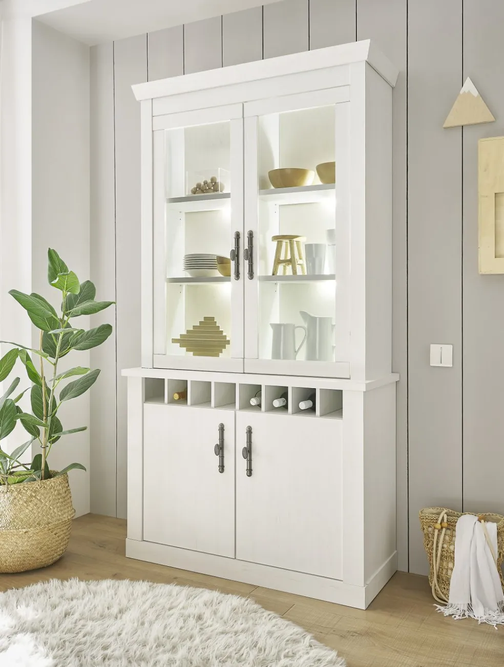 Façade : décor pin blanc / verre