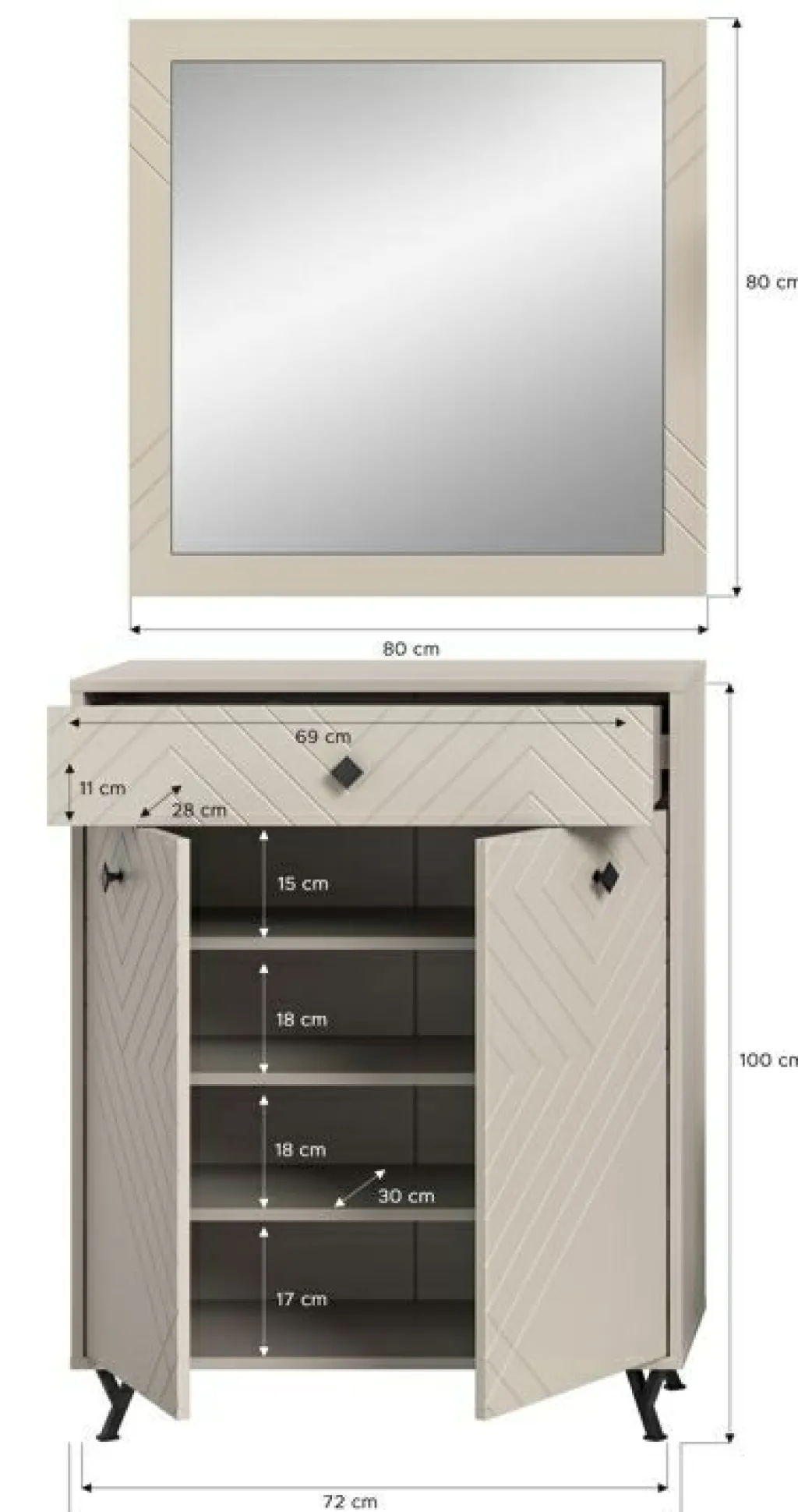 1 meuble à chaussures avec 1 tiroir, 2 portes et 3 tablettes amovibles