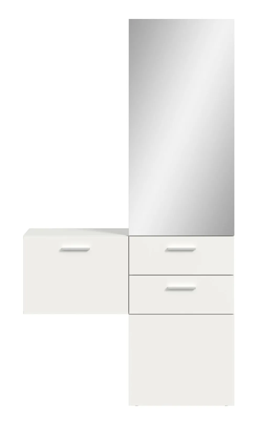 1 vestiaire compact avec 2 tiroirs, 1 miroir, 1 tablette et 1 barre de penderie