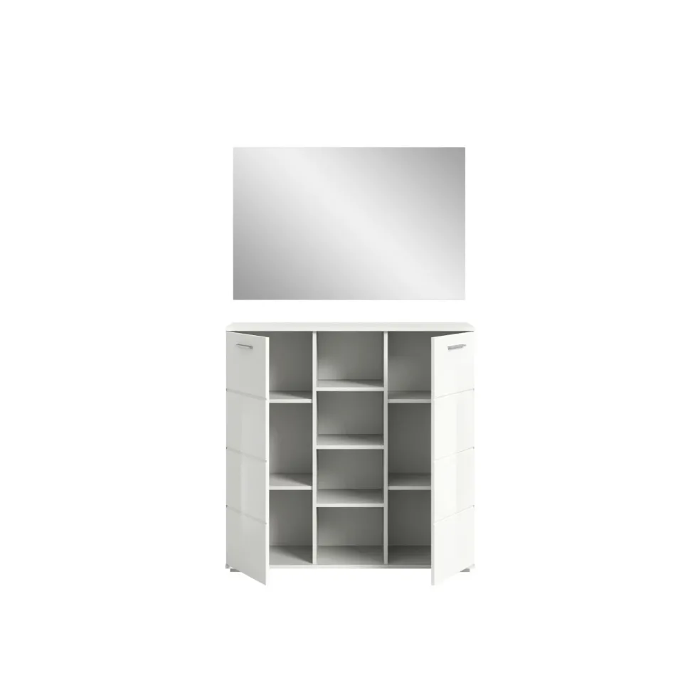 1 meuble à chaussures avec 4 casiers ouverts, 2 portes et 4 tablettes amovibles