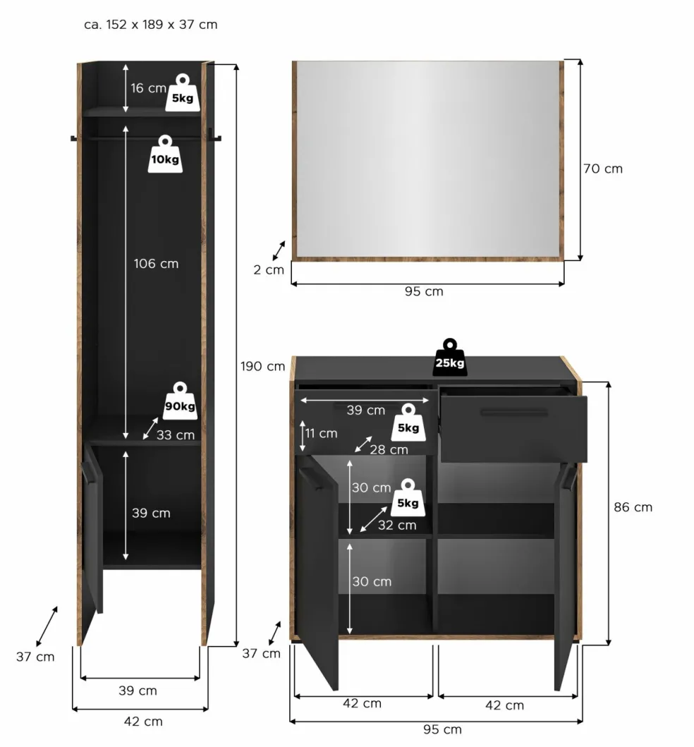 | Dimensions : | L/H/P env. 152/189/37 cm | ||