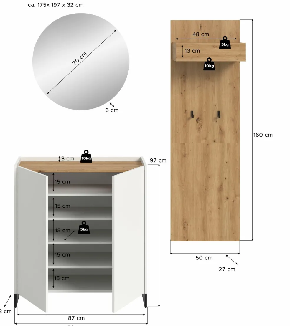 | Nuance de couleur: | ton blanc – chêne Artisan | ||