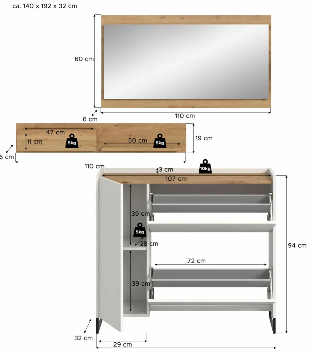 | Meuble à chaussures | 110 | 94 | 32 |