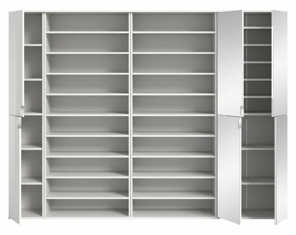 2 étagères à chaussures avec 8 tablettes amovibles et 1 tablette fixe chacune