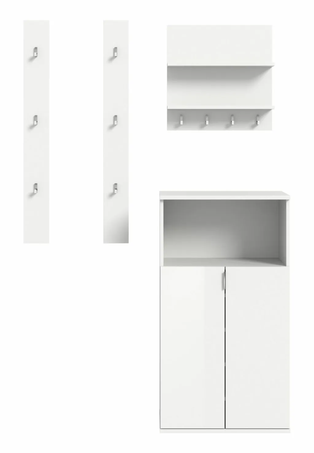 1 meuble à chaussures avec 1 casier ouvert, 2 portes et 4 tablettes amovibles