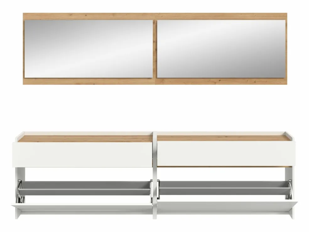 Façade : ton blanc et décor chêne Artisan / miroir